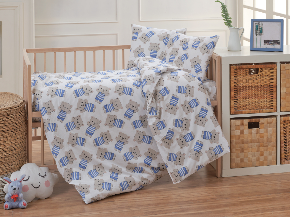 Bavlněné dětské povlečení do malé postýlky 90x135, 45x60 cm Medvídek, zapínání: zipový uzávěrskladem566 Kč