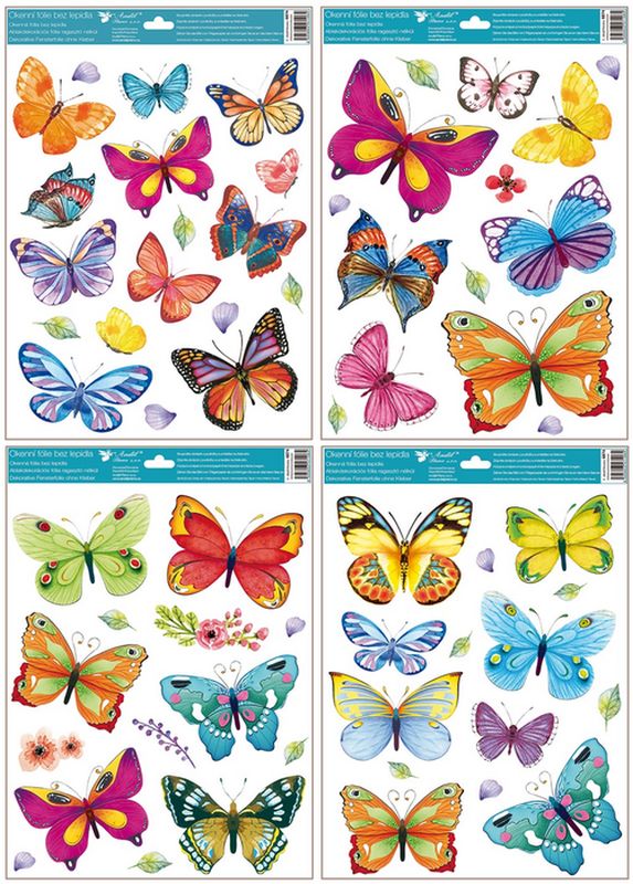 dekorace okenní MOTÝLI barevní 42x30cm, 4motivy, fólieSkladem51 Kč