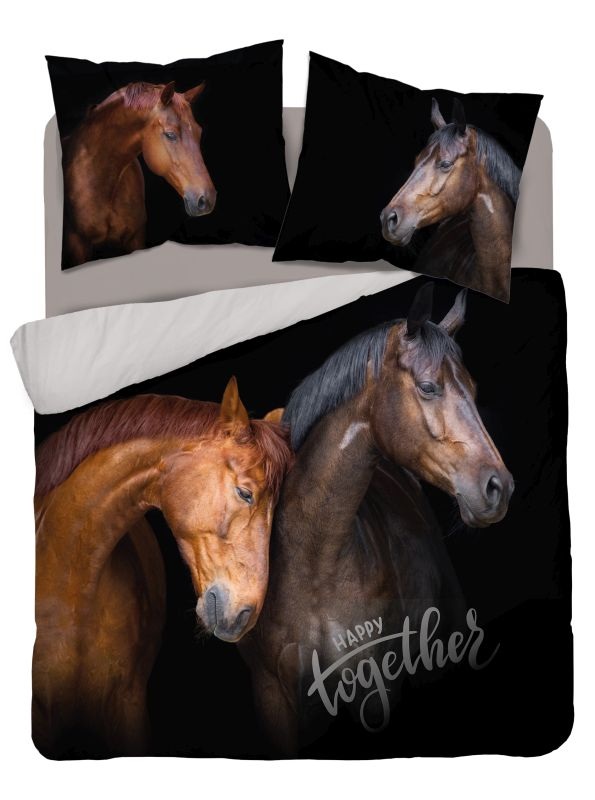 DETEXPOL Francouzské povlečení Koně Happy together Bavlna, 220/200, 2x70/80 cm