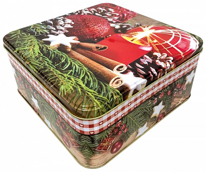 dóza plech. 16x16x7cm, 2dek., VÁNOČNÍ CUKROVÍ