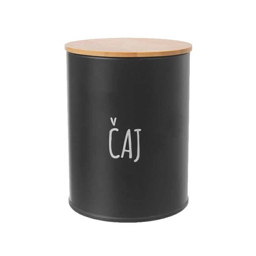 dóza plech. d 9,5x12,5cm, ČAJ, BLACK, plech/bambus