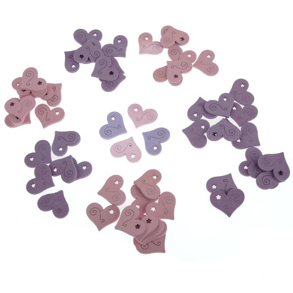 - Dřevěná dekorace -srdce, růžová, fialová - sada 60ks, 0/48
