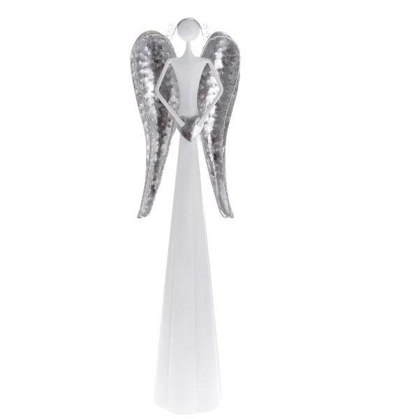Kovový anděl se srdcem, s LED světlem, 6/12