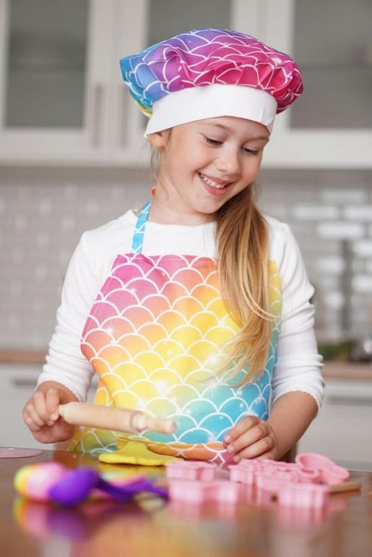 Všechny doplňky jsou vesele laděné v barvách duhy, které dodají pečení spoustu radosti a barev. Perfektní dárek pro každou malou milovnici pečení.