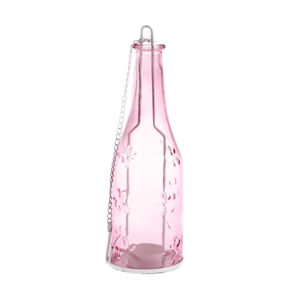 Závěsný skleněný svícen - fialové barvy - tvar láhve 0/24